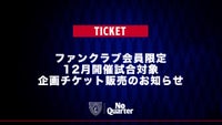 ファンクラブ会員限定 12月開催試合対象 企画チケット販売のお知らせ