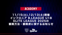 11/15(土),12/13(土)開催「インフロニア B.LEAGUE U18 ELITE LEAGUE 2025」の観戦方法・観戦席に関するお知らせ