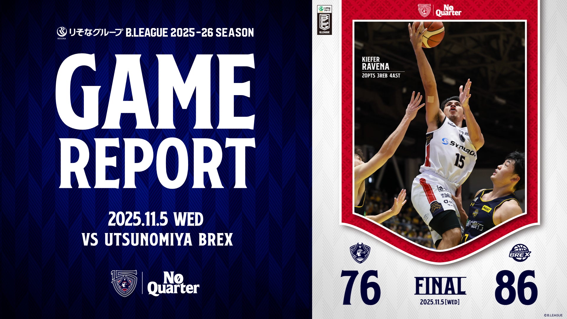 【GAME REPORT】 りそなグループ B.LEAGUE 2025-26 SEASON 第8節 vs 宇都宮