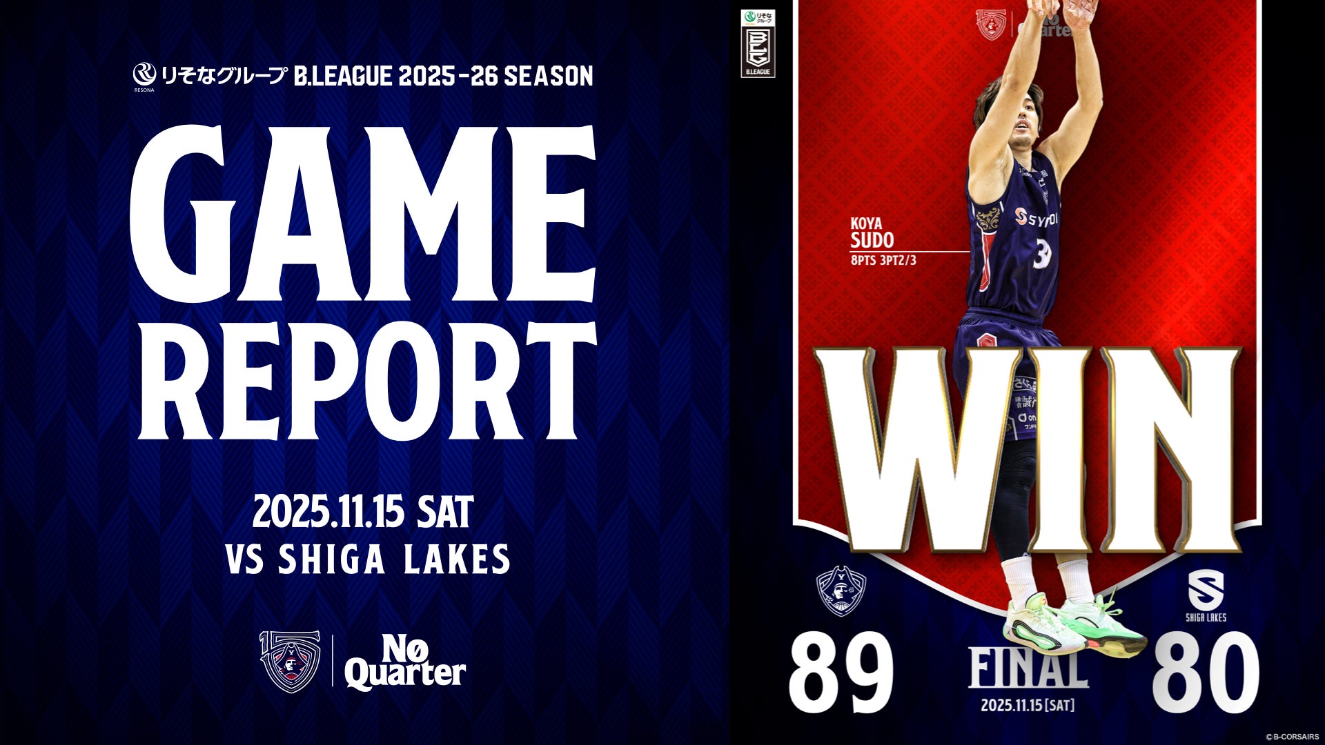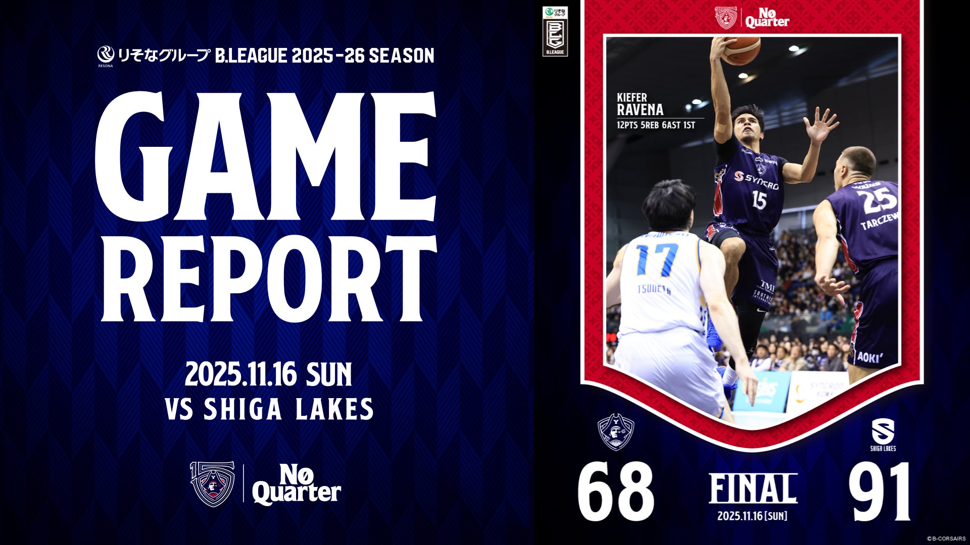 【GAME REPORT】 りそなグループ B.LEAGUE 2025-26 SEASON 第11節 vs 滋賀 GAME1