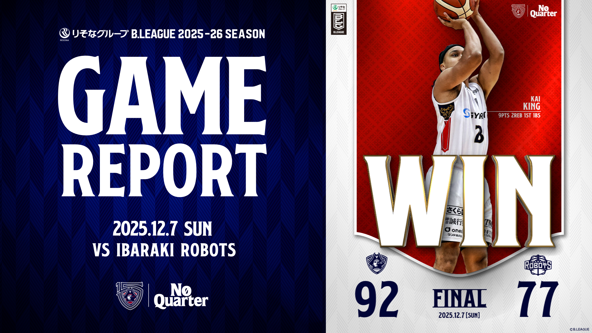 【GAME REPORT】 りそなグループ B.LEAGUE 2025-26 SEASON 第12節 vs 茨城 GAME1