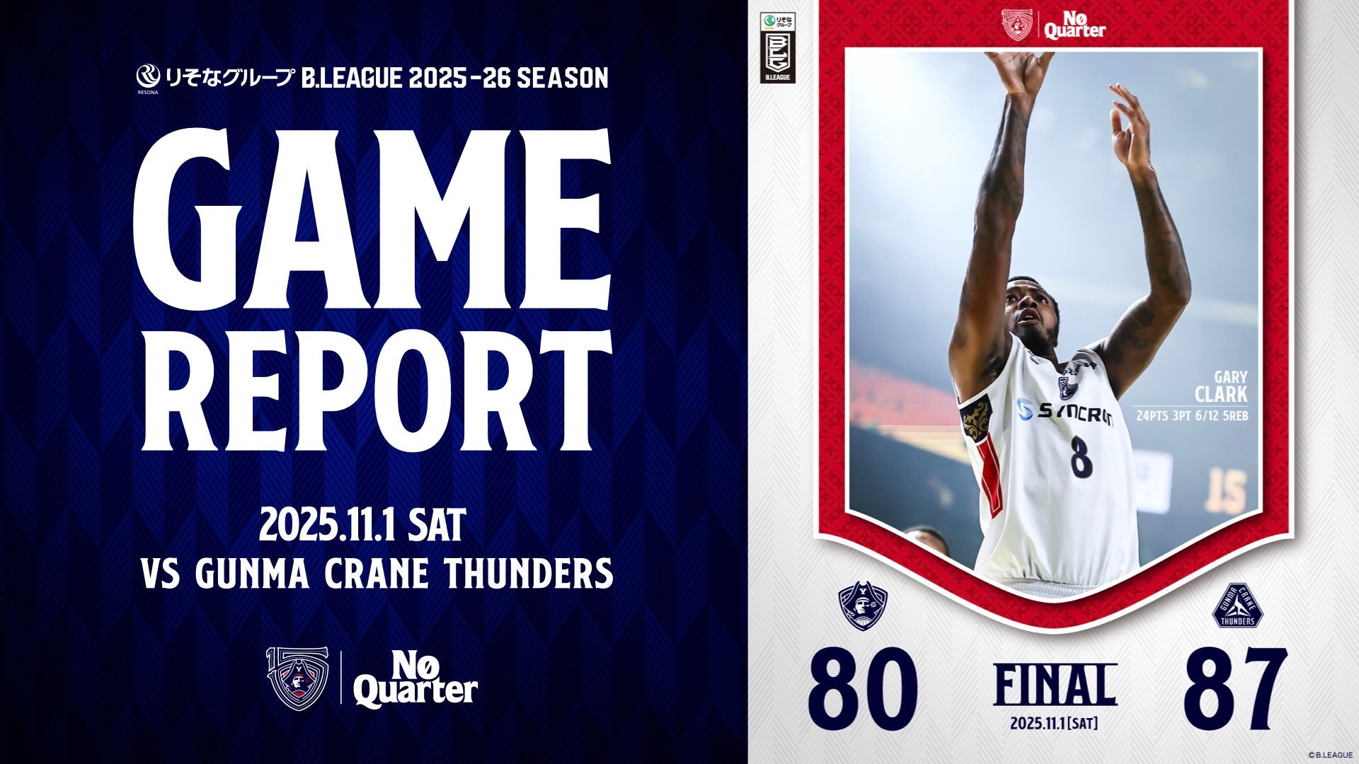 【GAME REPORT】 りそなグループ B.LEAGUE 2025-26 SEASON 第7節 vs 群馬 GAME1