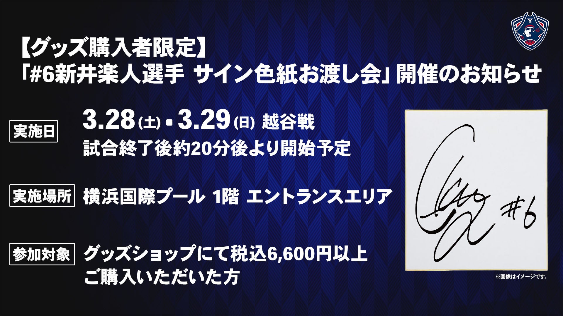 【イベント情報】 3/28(土),29(日)越谷戦「【グッズ購入者限定】#6新井楽人選手 サイン色紙お渡し会」開催のお知らせ