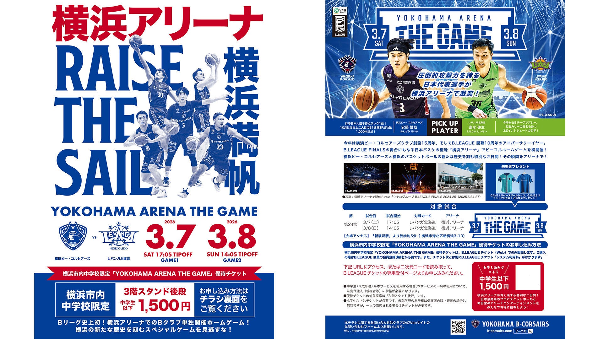【横浜市内中学校限定】3/7(土),8(日)横浜アリーナ開催ホームゲーム「YOKOHAMA ARENA THE GAME」優待チケット販売のお知らせ